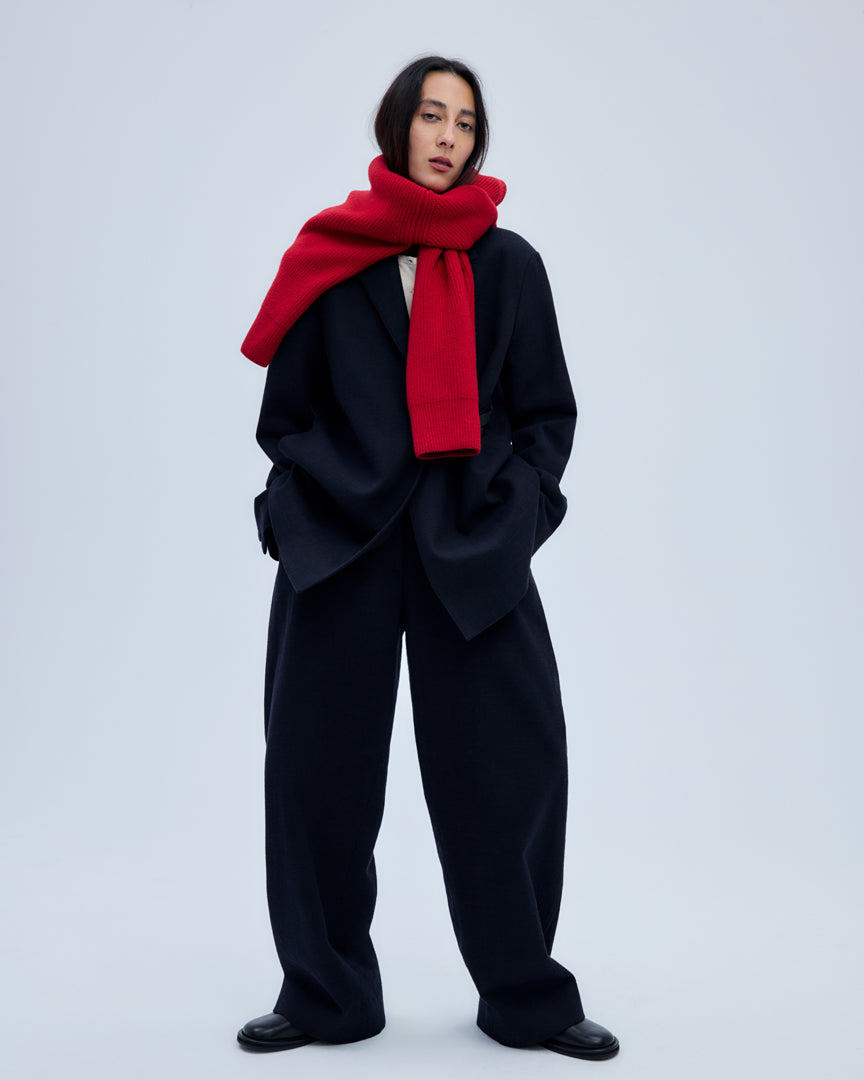 柔らかく、触り心地が良く、耐久性にも優れた「アストロナイロン」を使用。一方で、細部にもこだわり、STUDIO NICHOLSONのブランド理念である、ミニマルで洗練されたレディ・トゥ・ウェアコレクションのエレガンスさも表現している。