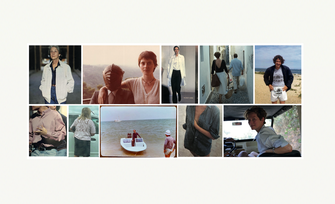 イメージを探すときは、服だけでなく人物にも注目しています。このイザベラ・ロッセリーニの写真、マスクの下にいるのはマーティン・スコセッシらしいのですが、彼女が彼に恋してるみたいな雰囲気がたまりません。この写真を撮った人には賞をあげたいくらい(笑)。あのマスク、ゴム製なのか金属製なのかすら分からない。そして彼、ネクタイをちゃんと締めてないんですよ? 茶色のスーツにマスクって、もう最高。彼女のランダムなジュエリーも好き。この写真は、私たちの夏向けのガーゼベストCillaの参考にもなりました。全体として、“どこか遠くへ旅している感じ”がすごく伝わってくる一枚です。