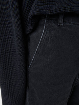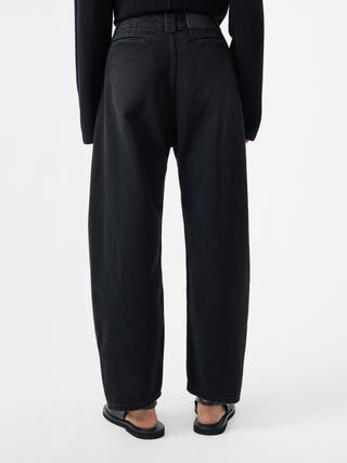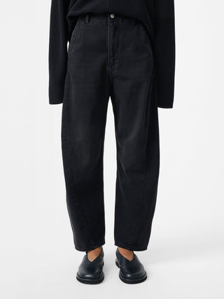 ハイウエストで、パターンの設計にこだわったラウンドシルエットが特徴的なパンツ。再生コットンを使用している。