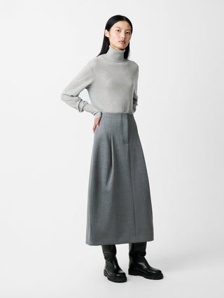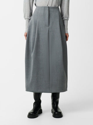 ポリエステルとビスコースの混紡糸を使用したスポンジのような素材を使用したスカート。素材感とこだわったパターンで構成されたブランドらしい丸味があるシルエットが特徴的。