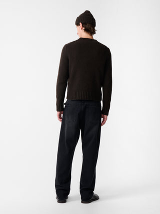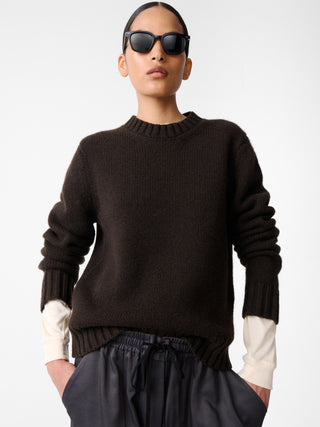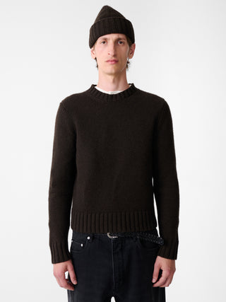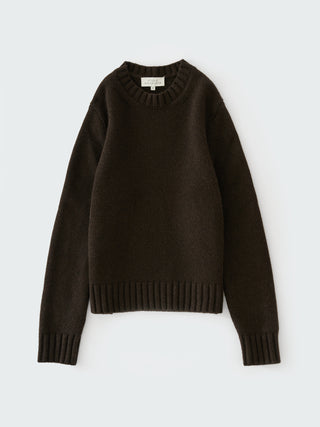ヤクとエクストラファインメリノウールを使用したクルーネックニット。目の詰まった質感と暖かさが特徴的。すっきりとしたスリムなシルエットに仕立てられ、レイヤリングに最適。
