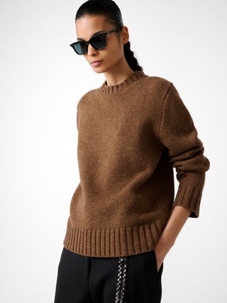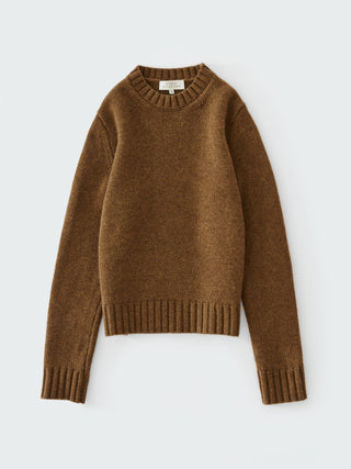 ヤクとエクストラファインメリノウールを使用したクルーネックニット。目の詰まった質感と暖かさが特徴的。すっきりとしたスリムなシルエットに仕立てられ、レイヤリングに最適。