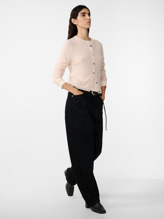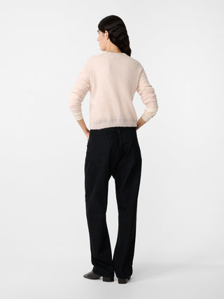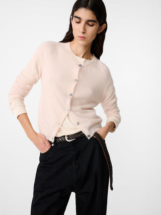 キッドモヘヤとアルパカをブレンドした生地で作ったニット。クラシックなカーディガンから着想を得た一着。柔らかく心地のよい肌触りと、毛足のある豊かな質感が特徴的。レイヤードにも最適。
