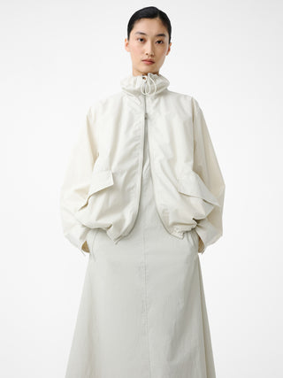 上質な素材使いとモダンなデザインを融合させたジャケット。素材にはノイジーコットンを使用しており、パリッとした心地よいハリのある手触りが特徴で、ジャケットのコンテンポラリーな雰囲気をより引き立てている。襟と裾にはドローコードを備えていて、絞ることでシルエットやボリュームの調整が可能。実用的なフラップポケットを配した機能的なデザインに仕上げられている。