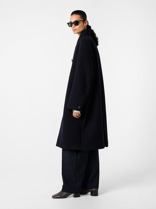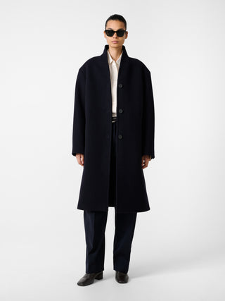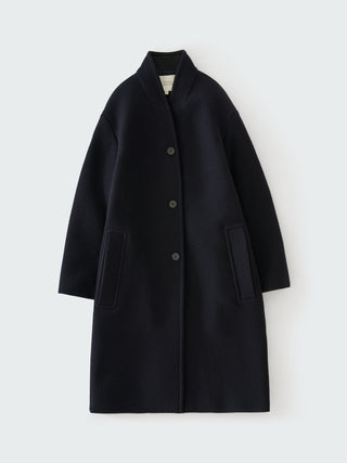 イタリア製ダブルフェイスのカシミヤを使用したオーバーコート。適度な重みと柔らかく贅沢な手ざわりが特徴的。伝統的なテーラードコートを洗練させたアイテム。襟は立ち上げることができ、肩には自然な丸みを持たせることで、すっきりとした柔らかく包み込むようなシルエットとなった。