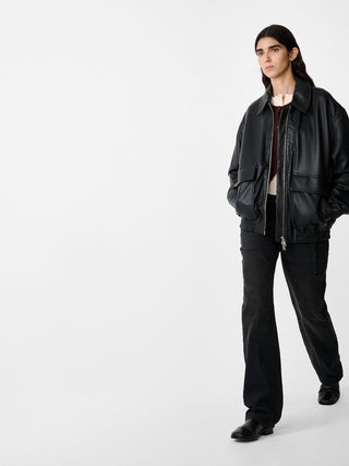 柔らかく上質なラムレザーを使用したレザーブルゾン。ヴィンテージのフライトジャケットから着想したクラシックなデザインに、大きなポケットや逆開ファスナーなどブランドらしい現代的なアレンジを加えたこだわり。