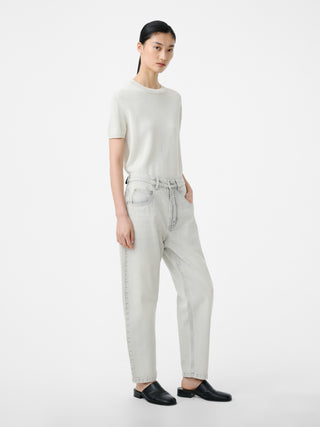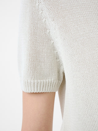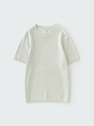 紙を原料としたペーパーヤーンを使用したニット。日本の和紙糸から着想を得た素材で、涼しくドライな肌触りと弾力のある風合いが特徴的。クラシックなT-シャツから着想を得た一着。クルーネックとショートスリーブ、リブトリムを備え、すっきりとしたシルエットに仕立てることで、さりげないレイヤリングにも最適。