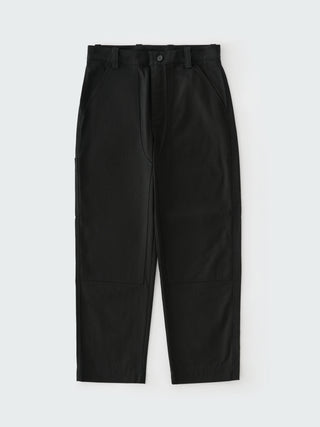 Aaron Levineとのコラボレーションアイテム。日本製のダックキャンバス(厚手で丈夫な綾織り)をパネル状に組み合わせたコットン生地を使用したパンツ。耐久性と重厚感ある手触りが特徴的。カーペンターポケットや大きめのバックパッチポケットを備え、レッグはスリムフィットに仕上げることで、伝統的なワークウェアの粗野な魅力を洗練されたモダンなシルエットに再解釈した。