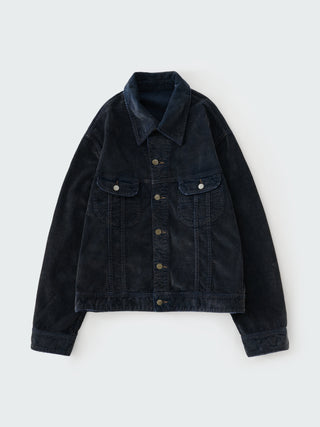 Aaron Levineとのコラボレーションアイテム。イタリア製のコーデュロイ素材に製品染め加工を施し、柔らかくこなれた風合いに仕上げたジャケット。STUDIO NICHOLSONのファブリックファーストの哲学を体現する一着。従来のトラッカースタイルのシルエットを離れ、ゆったりとしたボクシーな形でモダンな印象を与えている。スマートなスプレットカラー、コントラストステッチ、調整可能なウエストタブが上品なアクセントになっている。