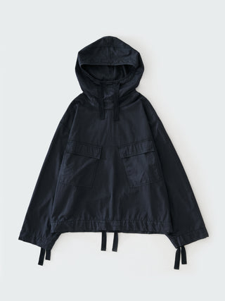 Aaron Levineとのコラボレーションアイテム。柔らかい手触りとヴィンテージのような風合いが特徴のガーメントダイコットンを使用したプルオーバージャケット。スポーツウェアから着想を得たフード、左右非対称のフラップポケット、厚地のヘリンボーンのドローストリングが、実用的で洗練された雰囲気を演出する。