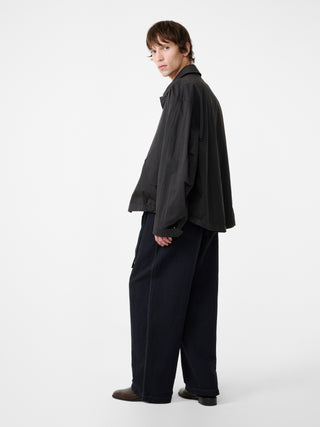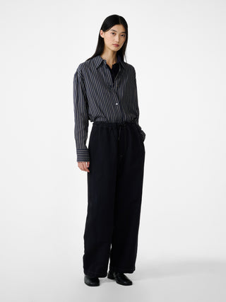 通気性に優れたコットンとリネンをブレンドした素材を使用し、製品染めを施したパンツ。一点一点奥行のある着慣れたような表情を生み出している。ドローコード付きのエラステックウエストと、緩やかにカーブを描くレッグラインが特徴で、リラックス感のある佇まいに仕上げられている。