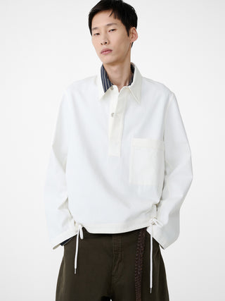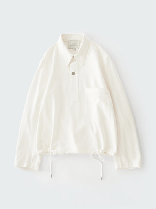 イタリア製のスラブコットンツイルを使用したシャツ。表情豊かな糸によって生まれる繊細なスラブ感が、不均一で奥行きのある風合いと高い耐久性をもたらしている。2つボタンのプラケットとゆとりのあるパッチポケットがクラシックなユーティリティスタイルを想起させ、裾にはシルエットの調整が可能なドローコードがある。伝統的なワークウェアに洗練されたひねりを加えたSTOWEは、スタジオニコルソンのファブリックファースをまさに体現する一着。